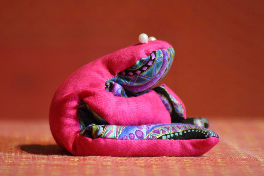 Pretty and ready to take a selfie at any time of the day. She is approximately 15cm long when laid out. She comes in luscious pink matched with blue, green and black patterning. She will arrive in a gift box ready for you to adore.